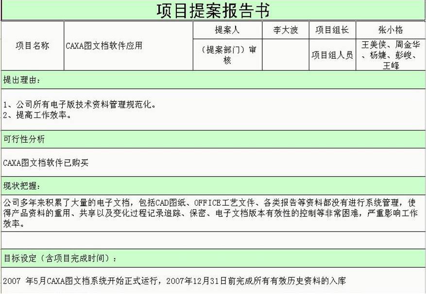 1.經過東風車輪和CAXA技術人員的探討,共同制定了一套切合公司實際的方案。2007年初引進CAXA圖文檔軟件后開始立項,成立項目小組,推進CAXA圖(tu)文(wen)檔在公(gong)司的應用。
