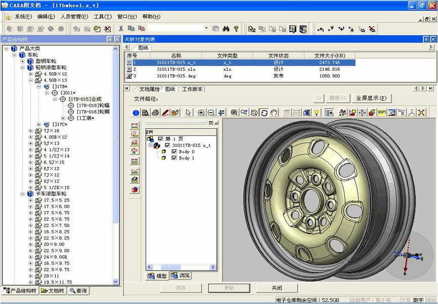 CAXA圖(tu)文(wen)檔管(guan)理(li)(li)系統為(wei)車輪公司建立了(le)一個有效的數據管(guan)理(li)(li)平臺,極大地提高了(le)技(ji)術(shu)管(guan)理(li)(li)和設計人員的工作效率,技(ji)術(shu)文(wen)件也實現了(le)規范化(hua)和標準化(hua)的管(guan)理(li)(li)。
