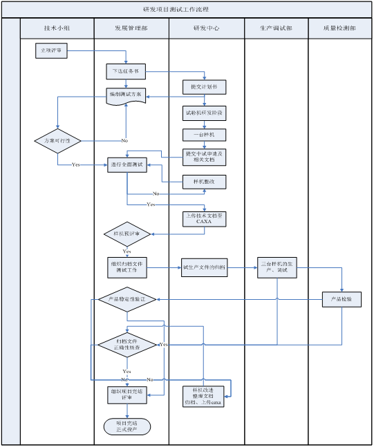 針(zhen)對公司項(xiang)(xiang)目(mu)研發過(guo)程(cheng)(cheng)中出現的(de)問(wen)題,項(xiang)(xiang)目(mu)管(guan)理部結合(he)CAXA圖文檔軟件制定了針(zhen)對項(xiang)(xiang)目(mu)研發過(guo)程(cheng)(cheng)控制流(liu)程(cheng)(cheng)《項(xiang)(xiang)目(mu)研發測試流(liu)程(cheng)(cheng)》,該(gai)流(liu)程(cheng)(cheng)實現了: