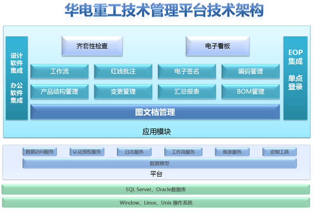 結合華(hua)電(dian)重工(gong)的實際(ji)業(ye)務需求,CAXA提供(gong)了(le)以(yi)協同管理(li)(li)為基礎(chu)的華(hua)電(dian)重工(gong)技(ji)(ji)術(shu)(shu)管理(li)(li)平臺,主要功能模(mo)塊(kuai)包(bao)含:設(she)計軟件(jian)集成(cheng)(cheng)(cheng)(包(bao)括(kuo)AutoCAD集成(cheng)(cheng)(cheng)、Electrical集成(cheng)(cheng)(cheng)、Inventor集成(cheng)(cheng)(cheng))、圖文檔、工(gong)作流、紅線批(pi)注、電(dian)子簽名、報表、編碼管理(li)(li)、齊套性檢(jian)查、制造看板、EOP集成(cheng)(cheng)(cheng)等(deng)模(mo)塊(kuai),基于功能模(mo)塊(kuai)技(ji)(ji)術(shu)(shu)人員可以(yi)在平臺中按(an)照工(gong)作流程開展(zhan)工(gong)作將技(ji)(ji)術(shu)(shu)數(shu)據(ju)準(zhun)確、快(kuai)速的上傳(chuan)到平臺中,形成(cheng)(cheng)(cheng)有序、高效的管理(li)(li)。再通過單點(dian)登(deng)錄、EOP集成(cheng)(cheng)(cheng)等(deng),讓技(ji)(ji)術(shu)(shu)管理(li)(li)平臺的數(shu)據(ju)可以(yi)為華(hua)電(dian)重工(gong)其(qi)它(ta)信息(xi)化(hua)系(xi)統傳(chuan)遞、準(zhun)確的提供(gong)數(shu)據(ju)支(zhi)撐。
